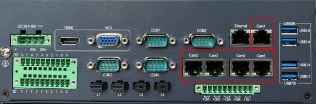Cam1, Cam2, Cam3, Cam4, Cam5 support 5 industrial cameras without POE function.